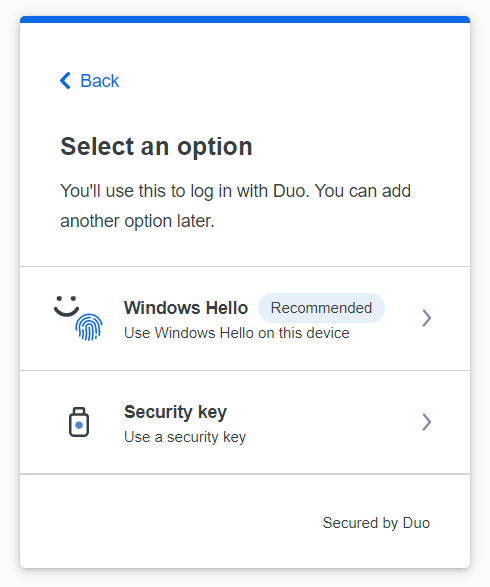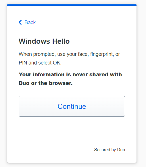 Two-Factor Authentication: Set up Windows Hello in Duo Universal Prompt